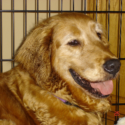 | Jackie born 2/20/04 weighs in at 70 lbs. Her vet determined she is NOT PG, and her temp is normal, her ears are terrible and require a different ear wash and medicine for 4 weeks or more to clear up the yeast and all that was found. Her stool had pinecone in it, on medication for diarrhea. She is not too keen on eating yet. She has a split top k-9 tooth that is going to need to be pulled while she is under for her spay that is set now for Thursday. | |