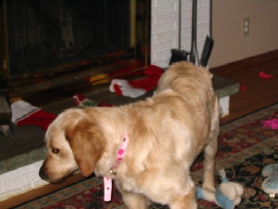 12/21/06: Jeeter is about nine months old. She is being fostered in Minneapolis, Minnesota. She is a sweet fluffy Golden girl who just wants to please. Jeeter is a typical early adolescent. She has energy and the desire to explore everything, but she is also learning new things very quickly.