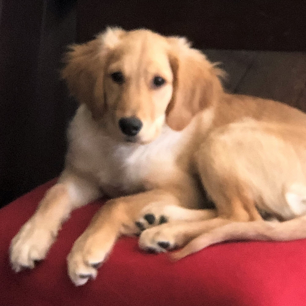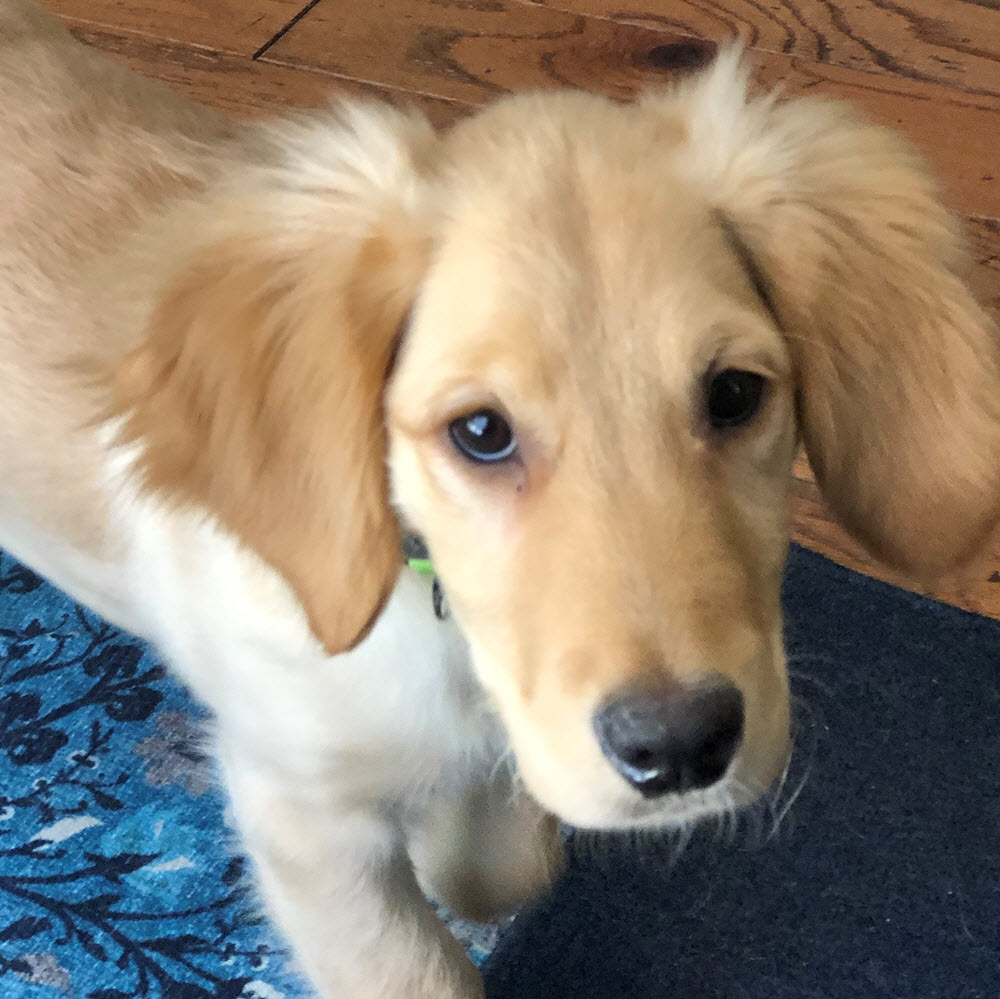 Hey sweet golden girl, keep growing big and strong. We love your ears and your big puppy paws!