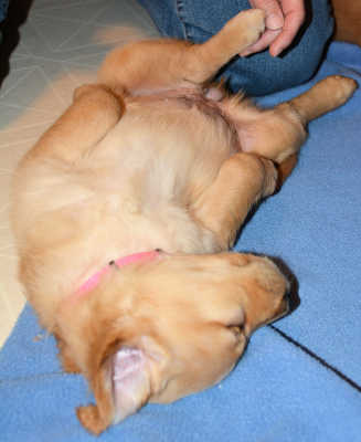 Now let’s talk about me. I am the smallest of all of the pups and at 4.5 weeks old, I weighed 5.3 pounds, which is over 2 pounds less that my fatty brothers Bixby, Chester and Oliver. FM thinks that they probably pushed me outta the way a lot at mealtime with momma. That’s OK, cause I think my smaller size makes me really adorable. A lot of people that meet me instantly fall in love with me. Well, at my last weigh-in on Thursday, I am now a whopping 7.5 pounds! A 2.2-pound gain in 9 days. FM is making sure I get my fair share of food!