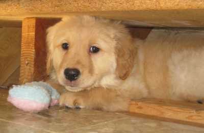 Kassie and her sisters (Nell and Lizzy) came from a small commercial breeder in Iowa. She is a purebred Golden Retriever born on December 26, 2014 and is now 10 weeks old. She has had her first round of shots and is healthy other than a low-grade heart murmur which may heal as she grows.