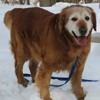 Keegan, at 8 years old, is showing no signs of being a "senior citizen." He is a little overweight and probably wouldn't mind being someone's couch potato, but he loves going on walks and can go the same 2 miles as his brother, although a bit slower. Since he was used to being outside, he loves being outside. One of his favorite pastimes is making snow angels.