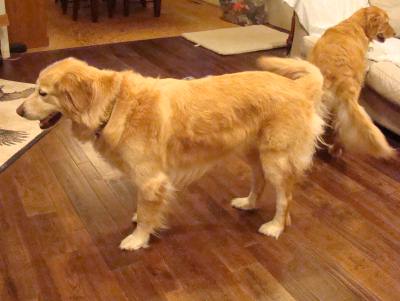 Buddy is a wonderful dog. He rides well in the car. He gets along with our two resident goldens and didn't seem to mind cats when he was at the shelter and the vet. He likes everyone he has met. He takes treats very gently but isn't really interested in them. Buddy loves to be outside and does well on a tie out. He does pretty well walking on the leash but is very curious to his surroundings so you have to remind him to heel. He hasn't had any accidents in the house and is very comfortable with the household noises so we think he must have been an inside dog.