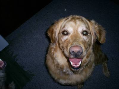 03/11/07: After a long day or riding in the car and meeting lots of new dogs Kiara – 4 yrs old - finally arrived on March 10th, 2007. She is overweight, but we are working on it! Yesterday we went for two walks and she walked amazingly well. She has not had any accidents in the house and sleeps with her blanket in the kennel at night. She greeted all her visitors yesterday with her HUGE smile, and a big wagging tail. She really is a blessing. We lost our cat on the 9th and Kiara coming has really helped us to cope with this. Her love and kisses have helped us through a hard time in our lives, and we only hope we can help her just as much. Kiara has to have a torn ligament surgery on her hind leg, but she is doing really great on it. It does not seem to bother her to much right now. She will go to the vet tomorrow. She does not jump on people when they come in the door but her wagging tail could sure knock you over! She is wonderful with kids and dogs, and it adjusting to cats. They are something new for her. She barks a little when she is excited and always come to sit by you to be petted, or flops down to have a belly rub!