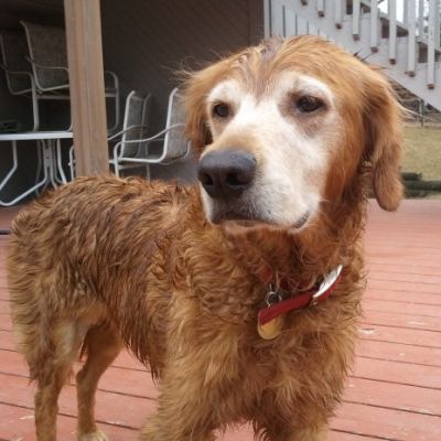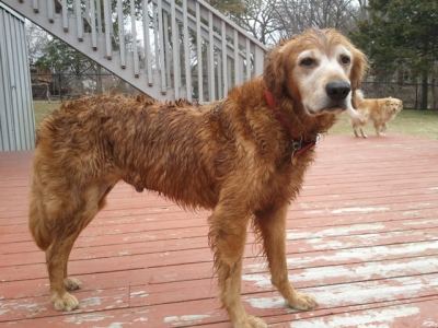 Killian is a purebred, neutered, lovely personality, very easy 8 year old Golden gentleman. We’ve had him with us now for a couple of weeks and have been tardy getting him on the website because my camera went missing and my phone was having problems sending pictures to the computer. All is fixed now and you can view a couple of pictures of my handsome foster boy that were taken after his bath.