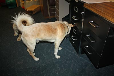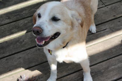 He is smart. Smart enough to go up to the kitchen while we were all down stairs in the family room, open a drawer and pull out a loaf of bread and help himself. I suddenly heard a ripping sound and went bounding (well ok I walked) up the stairs to find Little Laker enjoying some bread. Not much, but I let him know this was not something that was acceptable. I wonder if he used to eat human food? No matter, he is now eating good food and treats and we have had no more drawer opening issues.