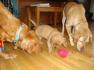 (L-R) Mama Alli, Lennie, and resident dog Izze