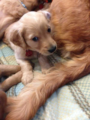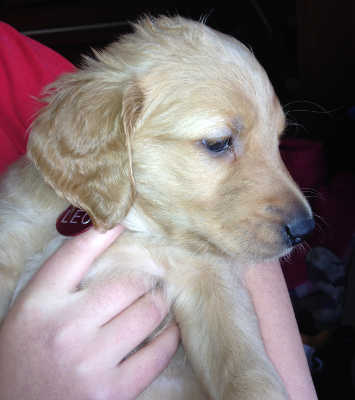 Welcome Leo to the RAGOM family! Leo is one of 10 puppies from Alli 13-353 that came in from a breeder who retired due to health issues. Leo was born on October 29, 2013, so is 6 weeks old now. He is a very healthy, active puppy learning all about life. He really enjoys playing with our five kids and resident dog, Izze.