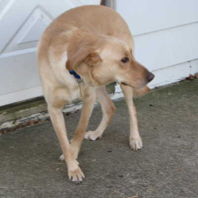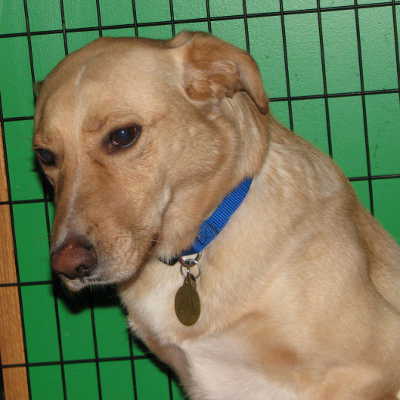 Please welcome Leon 13-402 to RAGOM. Leon is a 5-year-old Golden mix. My guess is Yellow Lab with a hint of Greyhound? Leon was surrendered to the Tri-County Humane Society because of a divorce in his family. Leon was sent to RAGOM because he did not do well in the shelter setting. He was very scared there.
