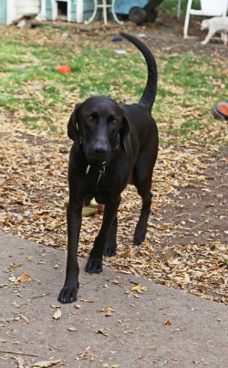 Lilly is probably a Lab/German Shorthaired Pointer mix. She is a petite dog. When she came into RAGOM it looked like she had a previous litter prior to getting pregnant again. She has the most beautiful and expressive eyes. Like most pointers she has energy and is always on the move checking out her environment. She loves to hunt for crickets or grasshoppers in the yard. It's so much fun to watch her jump like a cricket or grasshopper while trying to catch them.