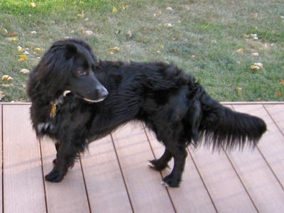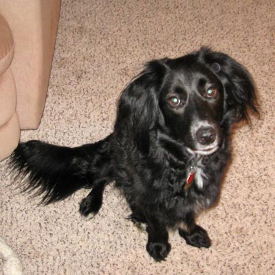Lilly is a one year old mix breed. She is a 38 lb bundle of energy. She is a beautiful smaller black dog with white markings from under her chin to her chest. She has the energy of a border collie, the gentleness of a golden and maybe a little mix of something else.