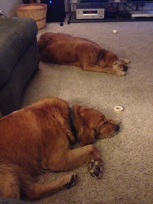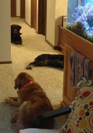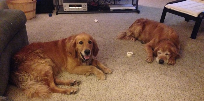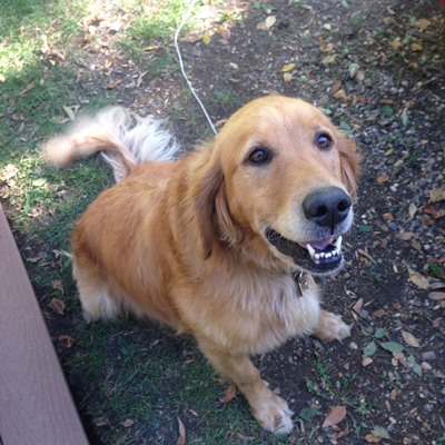 Lily May Anne came into RAGOM recently from her surrendering owner with her brother. Jasper 13-295, and is very quiet and laid back. She sometimes will spook easily from strange and sudden noises. Lily is 6 1/2 years old and is a pure bred golden retriever. She is so sweet that it pains me to see the state her ears are in. She is on some anti-inflammatory drops as well as some antibiotics at this point. We have a recheck with the vet to see how they are doing on Monday 10/14. She is so sweet and just loves being in the same room with you. She and Jasper 13-295 were in a place where they weren't with the family as much as they are now so they have adjusted very well to this new life with the family. She is curious about everything around her and she really enjoys playing with the resident dog Cesar. She does listen to general commands, Sit, Down, Stay (kinda-we're working on this one), and she is very good about going in the kennel. She has not had any accidents in the house and will go outside with the rest of the pack. She loves to be outside on her leash. We are working on her recall skills and so for the time being a fenced yard would be a good idea as well as a good exercise regimen. Lily is also learning to walk better on a leash. The first few days she would pull until she would choke herself. Also, whenever we go on a walk by ourselves she does better than if her brother Jasper is along. We've started Lily on Glucosamine tablets to be sure she continues her youthful energy and her joints are good. Lily and Jasper have been together her entire life so if they could find a forever home together that would be absolutely amazing. She would definitely have an adjustment period if she were to be separated from Jasper.