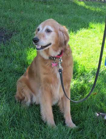 Lucy has arrived!! She is a beautiful 8 1/2 year old purebred Golden Retriever. Lucy has been spayed, microchipped and is up to date with all of her vaccinations. She is not currently on heartworm and flea/tick preventive so we will visit the vet next week and get her UTD. She seems to be very healthy and active. She weighs approximately 74 pounds.