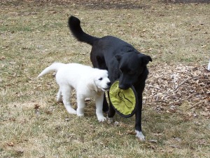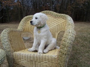 Luke here! I’m having the best time here! I’m learning lots of big boy things like how to go potty outside, and my FM is teaching me to “sit” for a treat and come when she calls me. There is a 1-year-old dog here and he is my best friend. I love to play with him. We play bitey and wrestle, and I just learned how to do zoomies. One of my favorite things to do is explore outside. I always find something fun like mushrooms, a petrified frog, or deer poop. FM has eyes in the back of her head though and never lets me eat my prizes. I love to chew just about everything—the rungs on the kitchen chair, the toy basket, the lawn chair, FM’s slippers. She has lots of stuffed toys and bones, and if I am chewing on something naughty she sticks something else in front of me and I just start chewing on that. Oh ya, I almost forgot to tell you I LOVE water: puddles, swamps, streams, lakes. If you have a cabin or a favorite lake where I could swim in the summer, I will be so happy!!!
