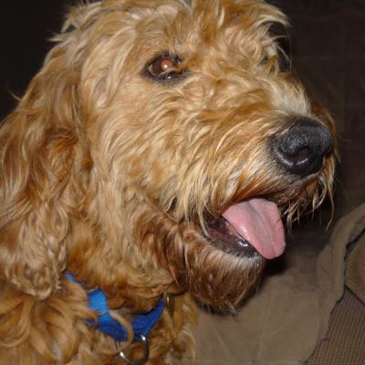 Maggie is an adorable Golden doodle, a South Dakota girl. She is a retired breeder and ready to enjoy the Golden life-being a mother is hard work! She will celebrate her 7th birthday the end of October.Basic information that is subject to modification:1.Dog friendly and another dog required2.Cat friendly3.Physical fence preferred, but known to cross over 6 ft fences4.Known to like tennis balls-not here, so far5.Walks on line/leash without pulling6.Goes politely through doorways and up and down stairs7. Food connoisseur8.No chewing or destructive behavior9.Crate trained per history. She finds comfort in her open crate. Open roam.10.Submissive urination when intimidated, afraid. That has improved with time and familiarity at foster home.11.Not child-tested yetAfter ten days in foster home, she has become more comfortable and her personality is emerging. Hand-feeding was necessary at first and Fancy Feast for her pills. Homemade chicken soup with our farm raised organic chicken. Maggie started an anti-anxiety pill, Trazodone October 1st and needed Mettronidazole for a week due to gastric upset. The question loomed whether emotional or physical. GI upset resolved, so I am guessing emotional, but also, understandable. Trazodone continues for now.Wow, is she blossoming! From the shy, submissive girl hiding in her crate to hanging out with the gang (three resident dogs and the cats). I always have Maggie on a leash outside with her history including jumping six foot fences-wish I knew more about the circumstances surrounding that gymnastic! Rescue dogs always have some surrounding mystery.Maggie is going through doorways, but waiting to be asked. Up and down the stairs-no problem.She loves riding in the vehicle; she hops right up, but it took two of us to get her out. She seemed glued on.Maggie shakes and she is ambidextrous and looks like she is smiling. "Sit" seems to be coming backMaggie put my female Lab in her place, as dogs do. No struggle for rank, but did need to give Slinky a reminder once. Maggie's confidence is growing. My male Beagle/JR is Maggie's hero, for now and has been showing her the way. It's so comical as Ernie is only 20 pounds and can walk right under her.Maggie is scheduled for her wellness exam on Friday. She had vaccinations updated and heartworm and stool check in South Dakota, but now needs a general inspection and eventually, spay surgery.Maggie will make someone a great pet! I don't see dog parks in her future, but who knows...