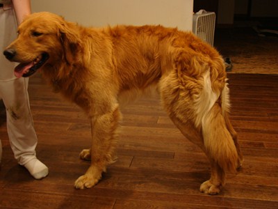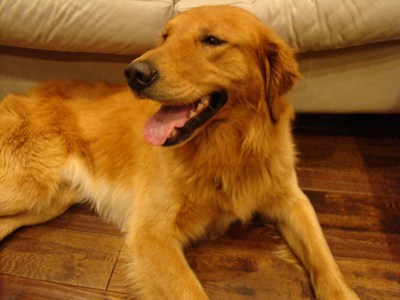 Mason is a purebred Golden Retriever. He was found as a stray. Mason loves to be around people. He is content to lay down at your feet and will follow you from room to room. He does not like to be in a kennel, but does well with free roam. He sleeps in our bedroom at night on the floor. Mason also gets along with our two resident Goldens.