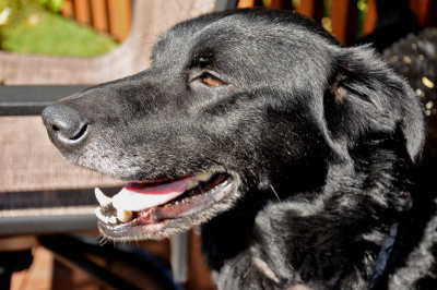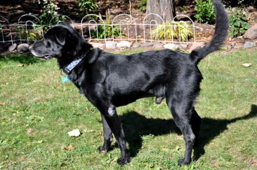 So my luck seemed to be changing, and I began to think that the Golden Life I was hearing about might be a pretty good life for a plain black dog. But then FM followed up on a tip from one of the people that I met on my trip that they had noticed a lump on my neck. When FM felt the size of the mass she immediately took me to see the doctor. After a couple of visits it was determined that I have a bad case of Cancer. It seems there is nothing I can do about it except smile and keep on going for as long as I can. Thanks to RAGOM at least I will spend the rest of my life being cared for in every sense of the word, rather than ending my days at the shelter. For the time being I am feeling good and am taking advantage of every day.
