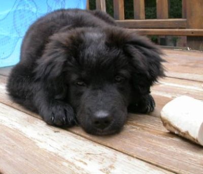 Ms. Midnight is the smallest of her siblings and is still close to 20 pounds at 3.5 months. She is a beautiful black color with a white spot on her chest. Now you are probably asking, hey what is a black dog doing on a Golden site? Well, she is an honorary Golden because Dad had some Golden Retriever in him. I have been told her mom is a Border Collie mix and dad was a Lab/Golden Retriever.