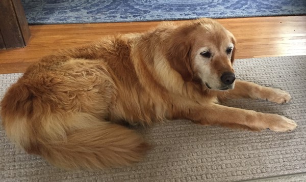Molly has the Golden nudge down as she is not letting me type up her web page. :) She doesn't want you to stop petting her.