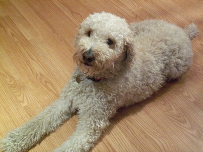 Monty is Mister Personality, and keeps himself entertained by throwing toys up into the air and chasing them. He is perfectly house-trained, and has free roam when we are gone during the day, without incident. I usually arrive home to find him sitting looking out the door as if he is waiting for us. He is already very loyal to our family, and, in fact, when my daughter was home sick one day, he laid at the foot of her bed the entire day. He loves his daily walks, but is just as content hanging out watching tv with the family.