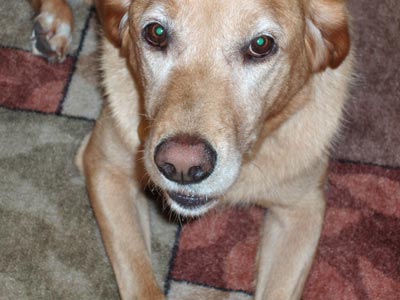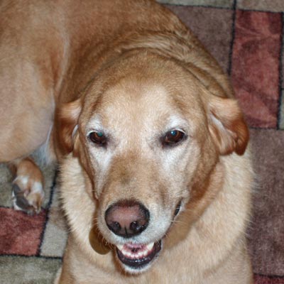 Nora arrived at our house on Saturday. Thanks to new transporters Al & Erna, they did a great job on their first transport. Nora is a 6 yr old Lab & some golden. She has the look of a lab & the golden personality to match. The short hair of a lab but some feathering of a golden. Just a cute little dog.