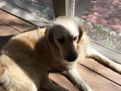 Norma Jean went to visit a home with a cat to see her response. There basically wasn't much response. She just wasn't interested in him. Always good to know. She is interested in rabbits and squirrels however. This interest has dissipated a bit though as she doesn't get quite as worked up when seeing them as she used to. We walk a lot and she does well with the Gentle Leader. She does have a habit of jumping on people at times but we are working on his. The kids we have come in contact with have been fine. Certainly no aggression. She just wants their attention. Slow introductions to kids would be best for her. She loves to be outside and now that the weather is warmer, she will just sit out on the porch and watch the world go by. It's a whole new world and life for her.