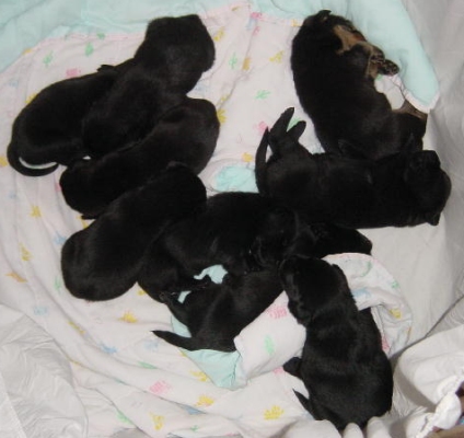 9/1/05: Puppy kisses!! We received a phone call this morning that 9 puppies lost their mother. They are two-weeks old and not yet old enough to eat on their own, so will be bottle-fed for at least the next week, and after that they hopefully will be able to start eating some very thin puppy gruel mixed with formula. No, they aren?t Golden Retrievers - they're a Lab mix. But they are seriously in need and we couldn?t say no. Kelli, an absolutely fantastic volunteer, has offered to short-term foster them for us. She owns and breeds Golden Retrievers and is extremely experienced in caring for young puppies, so these little ones are in very good paws :) Golden thanks to Kelli, and also to Michele and Konnie for taking over for Kelli!