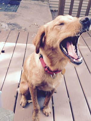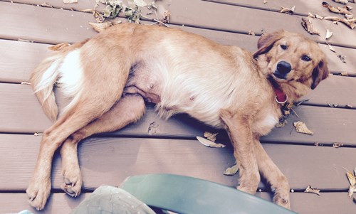 Olive is a three-year old female Golden Retriever mix, weighing 40 pounds. She does not require a fence, is kid friendly, and gets along with other dogs and cats. She has a sweet and submissive personality.