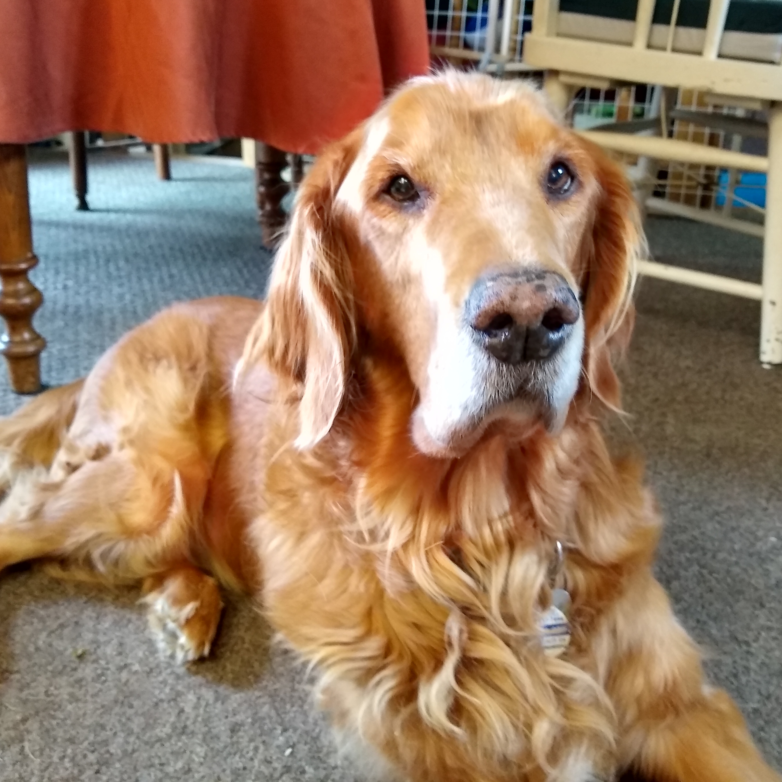 Otis came to RAGOM with Missy 19-051 as a bonded pair; they must be adopted together. Otis is an affectionate boy who enjoys being with other dogs, cats, and people. However, it would be best for any children in his home to be older (13+) as he has mobility issues and sometimes becomes confused due to his seizure disorder, for which he is receiving treatment. Otis will need a family committed to his continued health care and understanding of his needs.