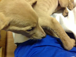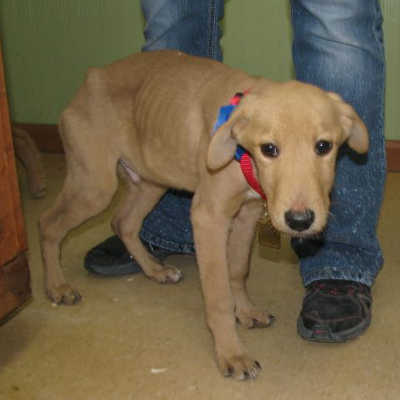 10/21/2013: Here is Ozzie’s story… RAGOM had 8 new dogs coming in from a hoarding/abuse situation in Cando, North Dakota. When our family saw the pictures, we knew immediately we would offer to help a pup. Fosters were found for all 8 pups in less than a day. A few days later, two amazing transporters, Barry and Mark, drove all the way out to Cando, ND, to pick up these very sick and malnourished puppies. It was an 800-mile trip to get 8 dogs. At 5:15 am Friday morning, Mark and Barry set out for Cando, ND. They arrived at 12:30 pm and were met with sad news. Yuki, one of the pups, had died sometime in the night, so now there were only 7 dogs left. They met the dogs and teared up just seeing the poor shape they were in. They were close to starvation and were so thin. Mark and Barry got down to work and gave names and collars to all the pups and got their paperwork in order. The pups were loaded in crates in their vehicle for the transport. It started to rain as they were loading. Ozzie was one of the pups picked up that day and he was on his way to his foster home…his new life would begin. Ozzie reached his foster home that night just after 9:30. His Foster Mom fought back tears when she first saw how very thin he was and his Foster Dad was angry at the people responsible for his condition. Ozzie weighed only about 10 pounds. But, Ozzie was home. He was promised life would be better from that moment on. Once inside, he came out of his crate and walked around the kitchen very slowly. Ozzie then crawled up onto his foster mom’s lap and snuggled in for a snooze. A short time later, he did get up and drank some water. He crawled right back into his foster mom’s lap. Over an hour later, Ozzie started to be a little unsettled. He was offered some food and wouldn’t take any. Ozzie did drink a bit more water. He went into his crate and it was prepared for the night, so he could rest and recover from his long journey. A short time later, when Foster Mom and Foster Dad were again with Ozzie after hearing some noises, he passed away. This sweet pup, who had such a rough life, experienced a few hours of love and compassion in a home. Ozzie taught this foster family a few things in the next 24 hours, through his spirit. He taught them to not try to understand why this happened to him, but rather to realize what else they could do to help other pups. Ozzie taught his foster family, including two young children, that what happened to him didn’t have to be forgotten or forgiven, but that the only way to move forward was to quit dwelling on what had happened and figure out what they could do next. There are so many dogs who need help and who deserve the chance to experience love and compassion. Ozzie’s spirit lives on in the remaining puppies, who so far have survived. After Ozzie’s passing, the remaining 6 pups received quick medical care and continue to improve, even though some of them have tested positive for Parvo. His spirit lives on in Bond, Cruz, Malak, Dreamer, Kai and Skylar…Ozzie’s buddies. Ozzie’s spirit will also live on in his foster family and his RAGOM family, and he will not be forgotten. Until they meet again at the Rainbow Bridge…Rest in Peace, sweet Ozzie.