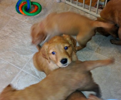 Welcome Pokey, to the RAGOM family! Pokey, aka “Boss”, is one of 10 puppies from Alli 13-353 that came in from a breeder who retired due to health issues. “Boss” was born October 29, 2013, so is 6 weeks old now. He is a very healthy, active puppy learning all about life. He enjoys playing with our five children and resident dog Izze.