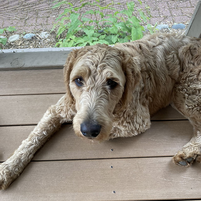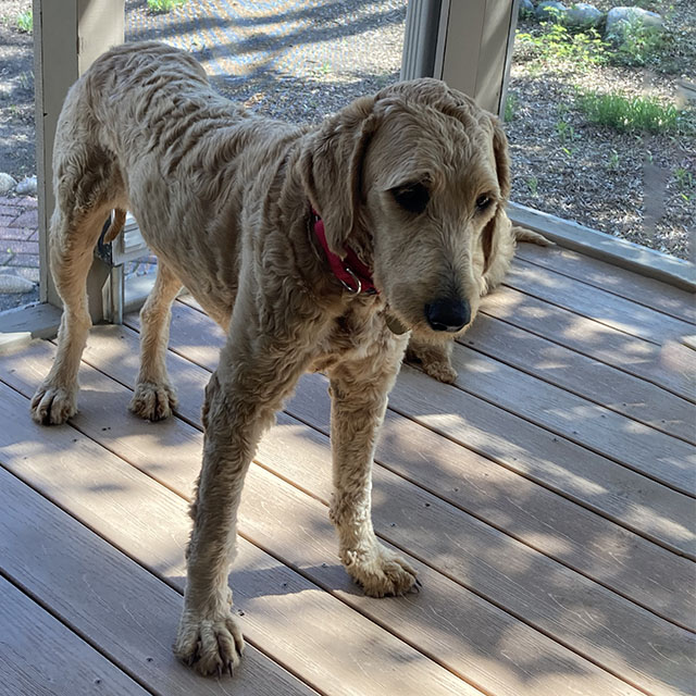Polly comes to RAGOM from a commercial breeder. As is typical of these dogs, Polly is nervous around young children, needs another medium to large confident dog in the house to act as a mentor. For those reasons, the children in Polly's forever family must be over the age of 8 and a fenced yard is not required as long as a solid safety plan is in place.