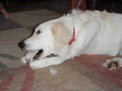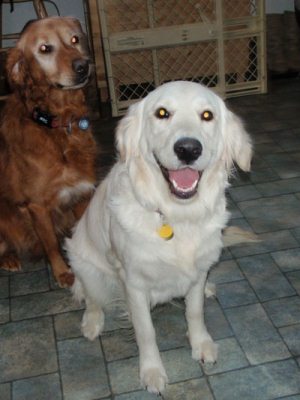 Queenie is a beautiful English Golden retriever who will be a year old in February, she sort of looks like a small version of a Great Pyrenees. She's already spayed but does have a few health issues we need to get resolved, which is why we have been waiting to post her update until now. She has had a series of urinary tract infections and also has a yeast infection that we are treating. Both of these issues are contributing to the accidents we have seen in the house as she's supposed to be housebroken.