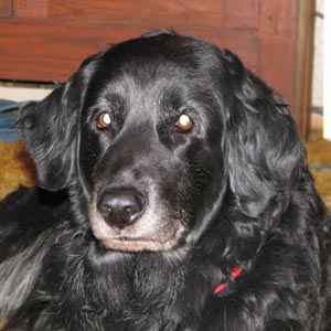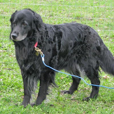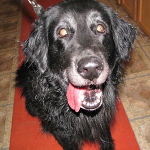 Raven is 7 years old and weighs 70 lbs. Raven is a Golden Retriever-Black Lab or Black Standard Poodle mix. Very good looking dog with silky soft fur. She is her ideal weight. It has taken her a whole week to adjust to living here with me, 2 other dogs and cats. Raven wanted to chase house kitty but not kill her. They are fine with each other now.