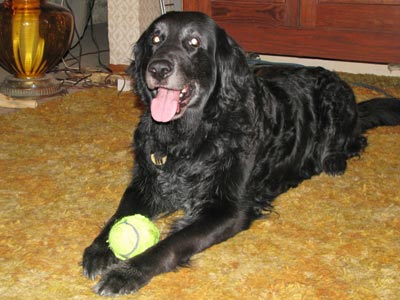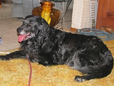 When Raven arrived here, with help from RAGOM Transporter Pat [Thanks again], she had been treated for fleas the previous day and was a bit stinky so after intros she got a bath with flea shampoo just to be safe. She was pretty good about getting a bath. Once she dried she got curly and shiny.