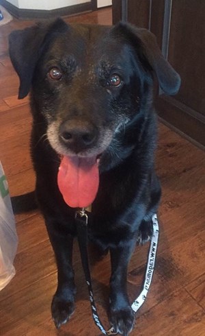 Hello! I am so excited to introduce you to Redd. The vet thinks Redd is about 7 years old. He is a very healthy (minus one mild ear infection), 87-pound, black lab mix who was surrendered to RAGOM after spending some wonderful months with a kind Good Samaritan in a loving temporary foster home before coming to live with us in central Iowa last weekend. He flourished in the care of his former foster family, and since the pool of applicants and potential adopters was small in their area, they turned to RAGOM to help find this boy his forever family.
