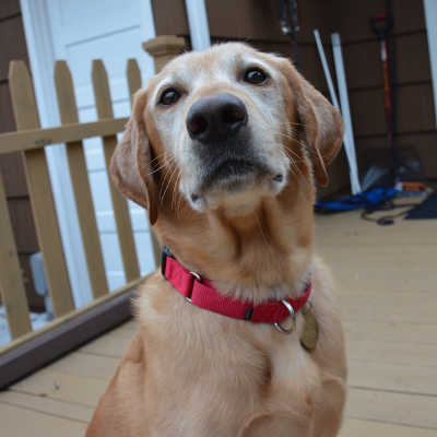 Now for the really good stuff. Remi is a super-duper sweet boy. Looks to be a Lab with a slender build, around 65 pounds. He has bonded very quickly with my husband and I, so I am confident he will bond quickly with his new family when they find him.