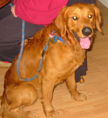 Rocco made it safe an sound to Alexandria, thanks to Nancy. Rocco is a 1 year old Golden who is all energy. He puts the Energizer Bunny to shame! He has been with us for about a day and a half and is starting to settle into our family. He is a very lovey boy, and he likes to play with our female Lab. He likes to be outside and will try to chase the rabbits or squirrels. A lot of love went into this dog.