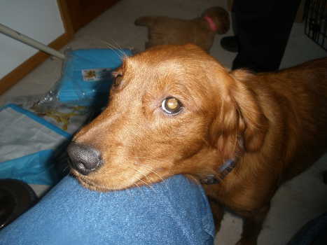 On September 22, 2013, my life changed again for me and my baby girl. RAGOM had the honor and privilege of being asked to take a number of Pine River Golden Retrievers to provide foster care and socialization. My Foster Dad (FD) and Foster Mom (FM) came and picked us up at 3:00 pm. My 5-pound bundle of joy was happy and went right into FM's arms, giving puppy kisses and wagging her little tail. I, on the other hand, did not want to leave. I was scared and unsure of what these “new” people wanted from me …. I was shaking and wouldn’t move; they had to carry me out and into the van. We arrived in Brooklyn Park and the next step in my life’s journey began.