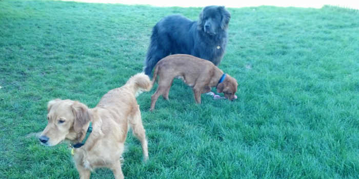 Frank (Champ 13-264), Rosa, and FB Maksy out in the yard
