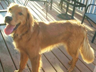 We will give you a full report following his vet appointment. He will probably be one of the taller goldens they have seen for awhile! As the saying goes, "he is tall, dark, and handsome". Some family will be getting a wonderful dog.
