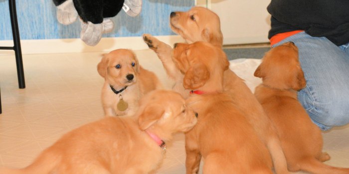 I would like you to meet Roxie; she is 6 and 1/2 weeks old and is fostered in Inver Grove Heights. She is a Golden Retriever. She is one of five pups born in this litter! She has made her way into our RAGOM family by way of the Animal Humane Society. Her mother was one of the 132 dogs seized from Pine River in July of this year. This was a puppy mill operation that has now been shut down, The Humane Society was caring for all of these dogs and while in their care 80 puppies were born. This was a very big endeavor for them and they asked for our help, we fostered the Golden Retriever dogs for them. When the case was settled and they won custody of the dogs they let us keep 9 of the dogs. Five puppies too young to leave their mother and 4 adult dogs to scared and afraid to be adopted out at the Humane Society, they know we have rehomed puppy mill dogs with great success! We will find them the best forever homes!
