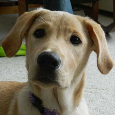 Please welcome Roxy to RAGOM! Roxy is a 3- to 4-month-old Yellow Lab. Roxy was found as a stray and was very thin, had a black tar-like substance on her, and had an injured front leg. An X-ray showed she had a chipped ulna and there was a possibility it could be at a growth plate. Roxy lived with the loving family who found her for a couple months and they unselfishly surrendered Roxy to RAGOM because they wanted to see her go to a family who was home more than they were. It is obvious they loved her dearly.