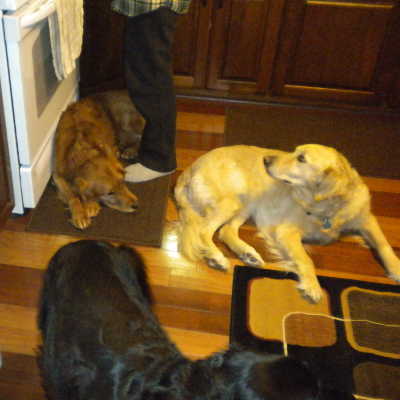 When Roy first came to our house, I was home every day and spent many hours just talking to him. We developed an instant bond and he seemed to trust me. Of course, the fact that he was comfortable with a female at the boarding facility certainly made this much easier. Roy would follow me around the house, come when called, followed me back in the house from outside, and sat next to my feet while watching TV. WOW! I was very excited and completely amazed. I knew he was used to eating in a kennel at the boarding facility, so I needed to create a similar space for him. To keep his world consistent, I turned one of our bathrooms into his personal eating kennel. Roy will follow me into the bathroom, and when I leave, I close the door. So far, this has worked perfectly for him. Roy eats his breakfast and supper without issue as long as the door is closed and he is left alone.