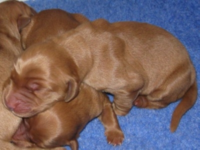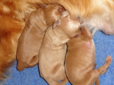 Hi guys! I'm Ruby and I am special because I'm the biggest of the kids and I'm the only girl! I was born yesterday, August 8th, to my pretty mommy, Aruba 10-201. My brothers are Ernie 10-241 and Hank 10-240, and they are both shrimps, if you know what I mean. But not me! I'm a sturdy 1 lb 1 1/2 oz as of this morning. As FM says, there are two kinds of puppies around here -- the quick and the hungry! Guess which one I am! It's kind of hard to stay awake with all that warm milk in my belly (seriously good eats!), but since I'm so sleepy, I don't worry about it too much. FM says I'll be ready to go sometime in October (not too sure what "ready to go" entails, but I guess I'll find out soon enough). If you are looking for a special girl puppy to share your life, maybe I'm The One!