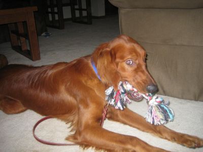 Rusty is an adorable 10 month old puppy. He is such sweetie! He was at the vet yesterday and he is very healthy. Just needs to gain a couple of pounds. He is going back in on Friday to get neutered. He is a lively guy, that is extremely good natured. He loves other dogs and loves to play with toys and chew his bone. He also loves to run! A house with a fence of some kind would be ideal, but not necessary. He doesn't bark much. He seems to be housetrained and knows the command "sit". I think with proper training he could be a great hunting dog! If you re interested in Rusty, please contact Placement.
