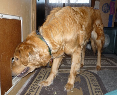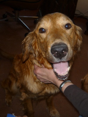 Sadie is continuing her post-op recovery and as her healing progresses, her personality has been shining through. Sadie is a seven and half years young Golden mix. She has been amicable with the six senior house felines and has developed a peaceful relationship with the resident basset/clumber spaniel. Sadie outranks the basset! Sadie is 100% housebroken, goes in her crate without a fuss and does not bark while in the crate. She sleeps on the floor, the couch and sometimes shares the bed. Sadie loves to be nearby and very patient when grooming is needed. ie. She laid down with tummy up when I needed to remove cockle burrs and it took a while! She is a counter surfer and likes to jump up to greet. We are working on redirection. Sadie has begun to be more playful. She fetches and drops the ball for you and recently has been enjoying a stuffed toy snake. This week Sadie will have a recheck and vaccination booster. What a wonderful dog!