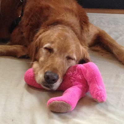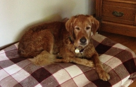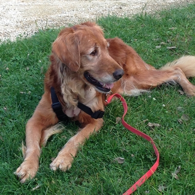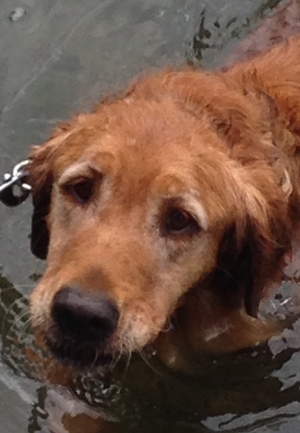 Precious girl, Sadie, was a stray. The poor old girl was not in very good shape when her luck changed and she came into RAGOM. She was very thin and matted beyond belief. But she was, and is, the sweetest girl ever. She has very stiff back knees and struggles with walking on hard surface floors. A lump on her neck was thyroid cancer and has been removed. But Sadie is a very happy dog! She loves having a home and people who love her. She loves her walks. She loves to swim. She loves to ride in the car and will always walk us to the door to see if there is a chance that she can go along. And, she is the only dog I know who doesn't even leave any nose prints on the windows! Dogs, kids, people. Sadie loves them all.