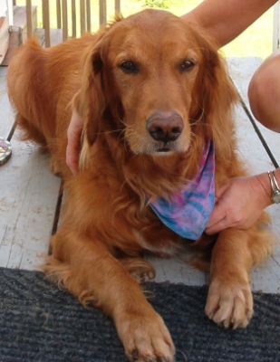 Sam is an 8 year old male Golden Retriever. Sam is a formerly adopted RAGOM dog. He suffers from periodic Separation Anxiety. This is the reason he has been returned to RAGOM after 4 years with a loving family. SA is not a constant problem for Sam, and he has shown no symptoms when he is with other dogs. Sam respects baby gates - he doesn't like them but he does respect them. His current foster home is working extensively with him to help him recover from his terror of crates. Even with this, I would hesitate to ask him to remain in a crate for long periods of time. I would NOT hesitate to baby-gate him into a safe room that does not contain papers to shred. The shredding of papers is the main way in which he has manifested his Separation Anxiety in the past.