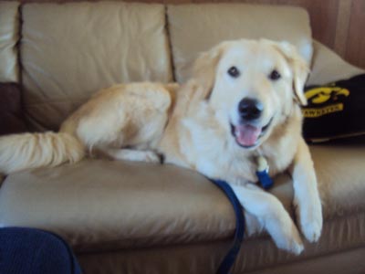 Meet Sam. He was delivered right to our door on Saturday morning. Thanks Sara and Matt! He is one beautiful guy. I believe he is called an English Creme. According to young girls of today, Sam is probably the Justin Bieber and to old girls like me, the Robert Redford of the dog world.